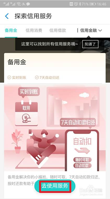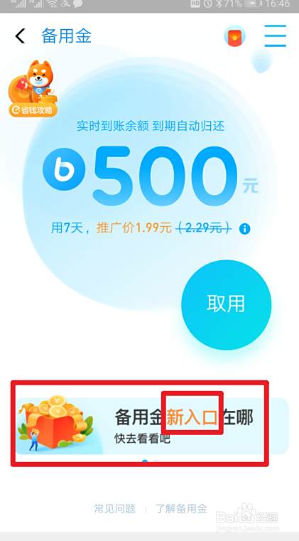 3.在备用金下方看到提示备用金新入口在哪,点击马上去看看。