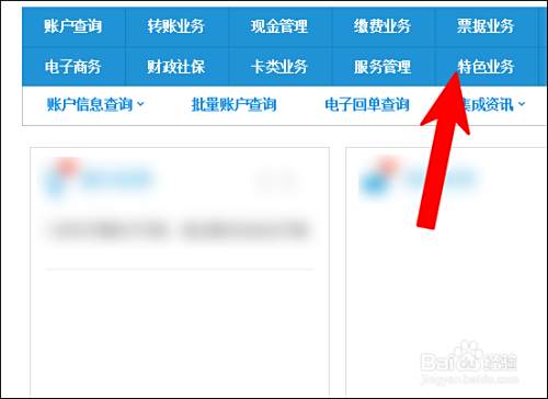 使用U盾在电脑上登录企业银行,以建设银行为例,点击特色业务。