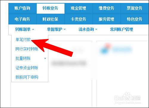 然后点击转账制单,页面弹出选项,点击单笔付款。
