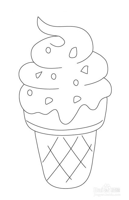在甜筒上面画很多的冰激凌,并在外表点缀巧克力等小糖球