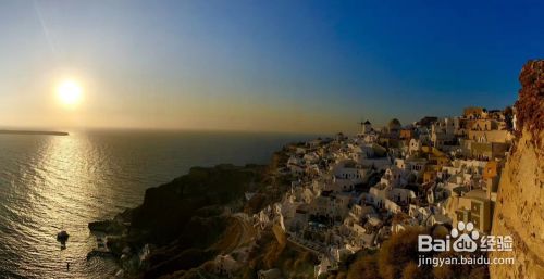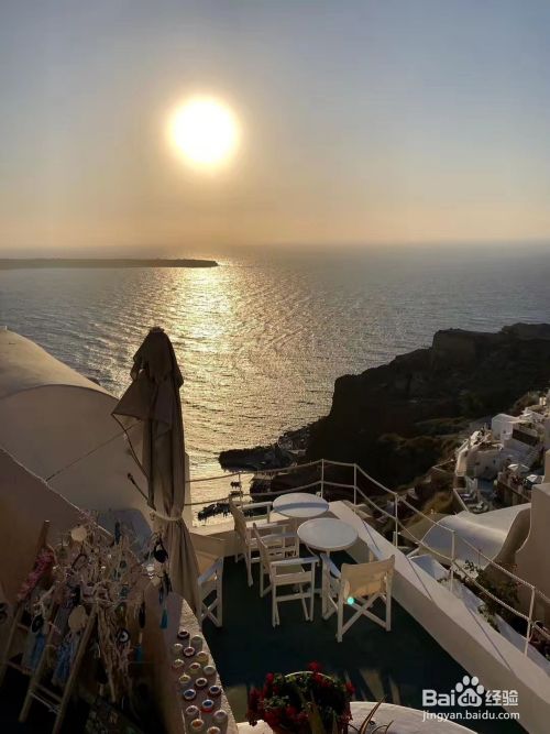 欣赏世界上最美丽的日落,坐在悬崖边的餐厅里看夕阳落入爱琴海。