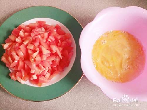 番茄洗净切丁,鸡蛋去壳搅成鸡蛋液。