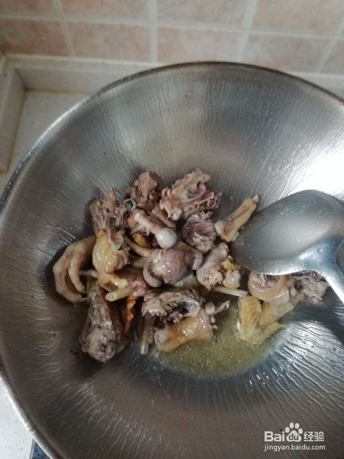 油锅热后,倒入鸡块。