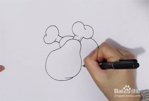 在这只鸡腿的后面再画上一个鸡腿,同样的方式画,角度不同。