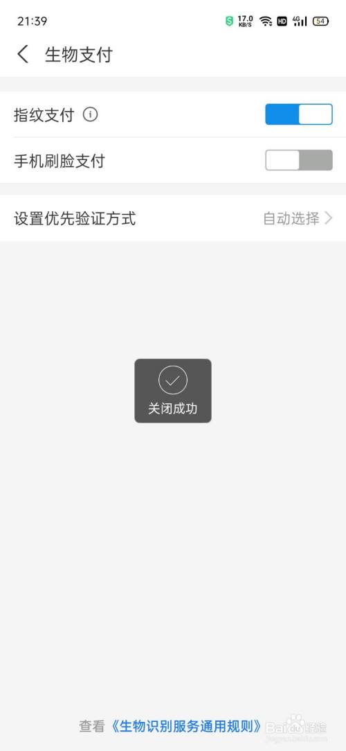 关闭手机刷脸支付