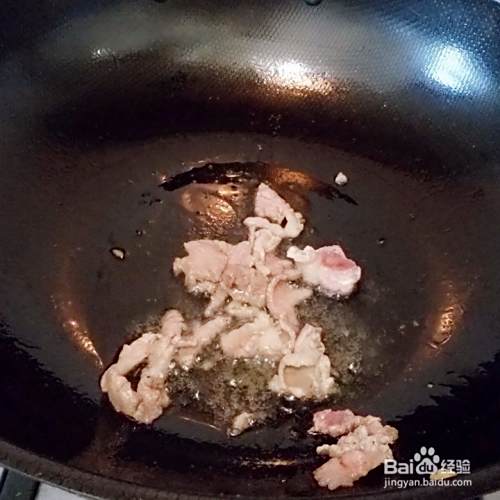 油八分开放入肉片煸炒。