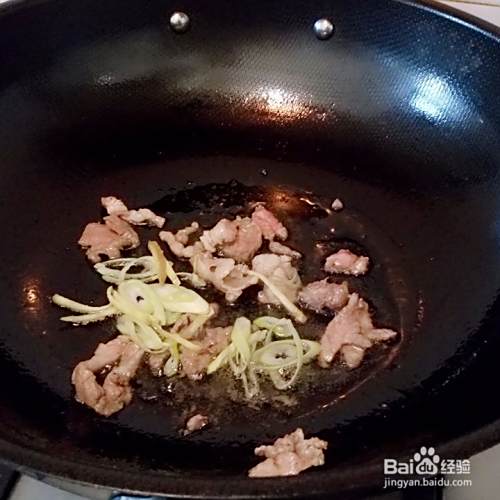 肉片变色,放入葱,姜爆香。