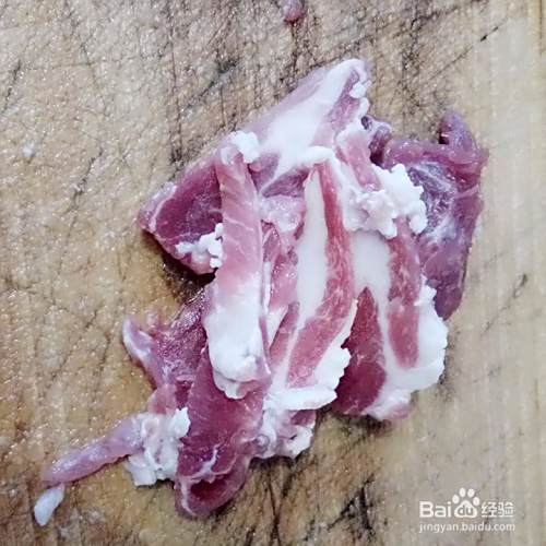 猪肉切成片,葱切片,姜切丝。