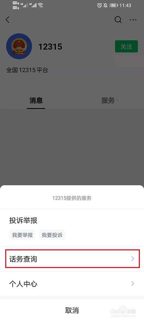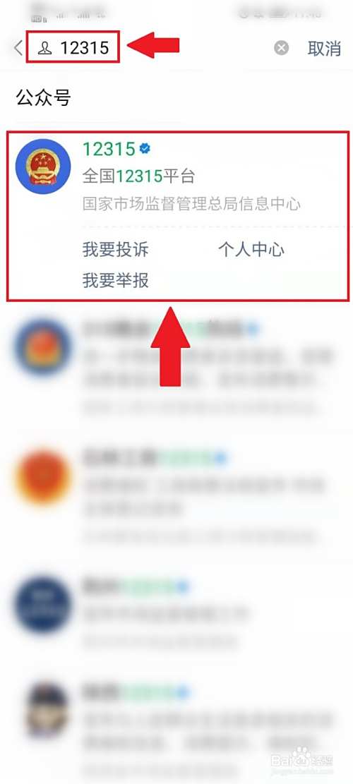 搜索“12315”,打开12315官方微信。