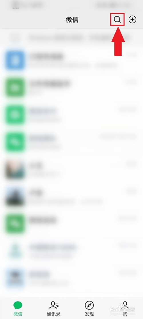 打开微信APP首页,点击右上角【搜索】。