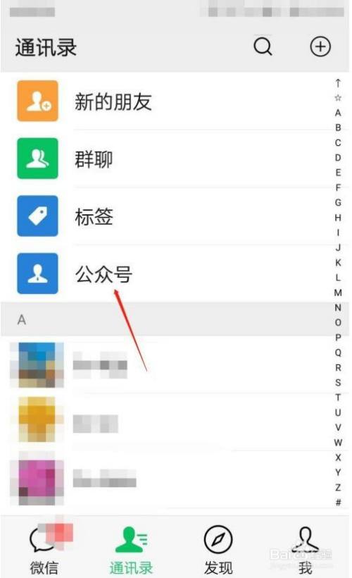 选择公众号选项。