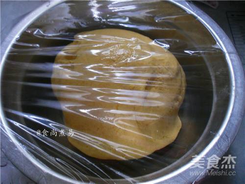 4面团揉匀,再添加一点泡打粉,继续揉至均匀,揉好的面团放进盆中,盖上保鲜膜静置15分钟左右