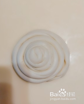 取一小块面团,搓成这个形状