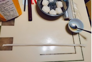 把面团揉成这样的长条状