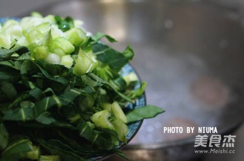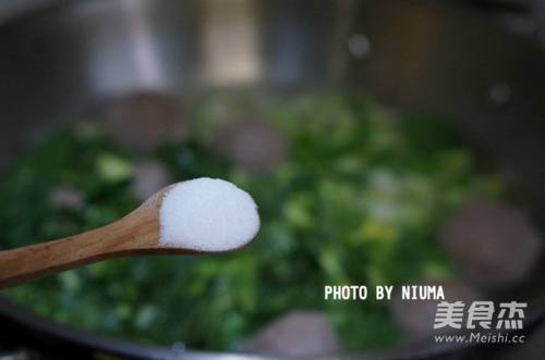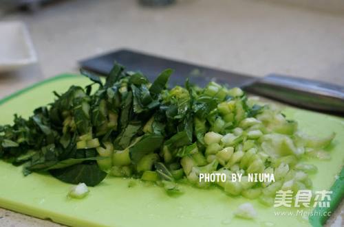 6青菜切的细小,易熟。这时再加入适量细盐。