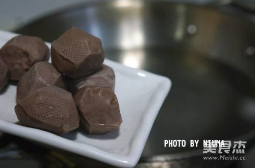 2锅里加水,将牛肉丸下锅煮至浮起。