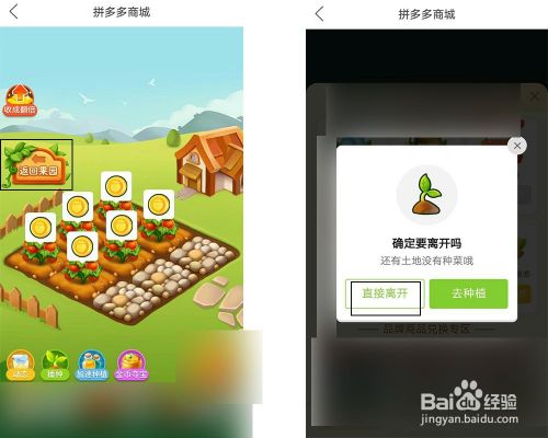 点击进入“农场”时可以种植农作物如果返回果园会提示直接离开,但是没有可以关闭果园的入口.
