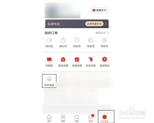 打开拼拼多,点击“个人中心”可以看到一个“多多果园.”