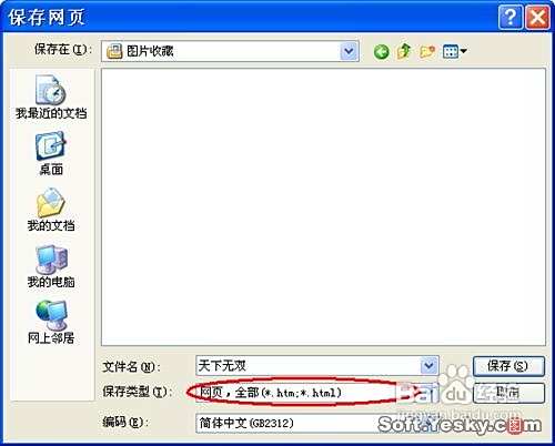 如果你想保存整个网页中的所有图片时可以采用本方法,因为它可以一次性的把所有图片文件都保存下来。方法是:看到你想保存的图片网页后,在IE浏览器中点击“文件”菜单中的“另存为”,把整个网页保存到硬盘,然后从中找到图片即可。注意,要选择“保存类型”中的“网页,全部(*.htm;*.html)”(图2)。