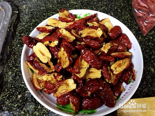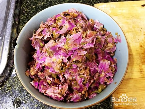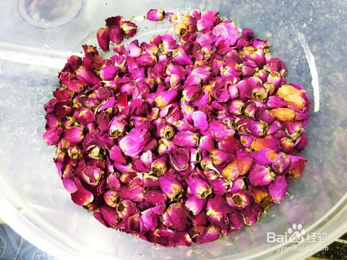 某宝上买的可食用干玫瑰花,把花蒂摘掉,清水洗净。