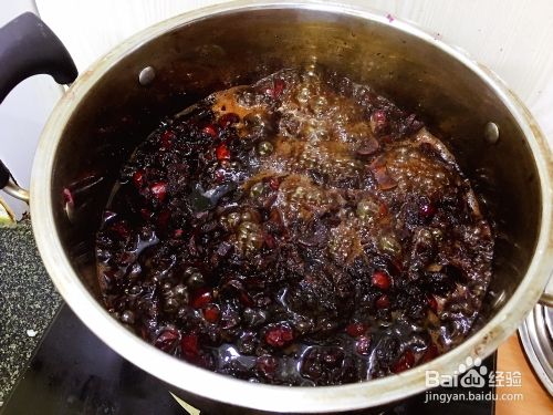 煮好的玫瑰花水中加入红糖,红枣一起小火慢熬,熬制过程中要经常搅动,防止粘锅。