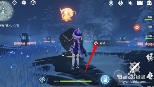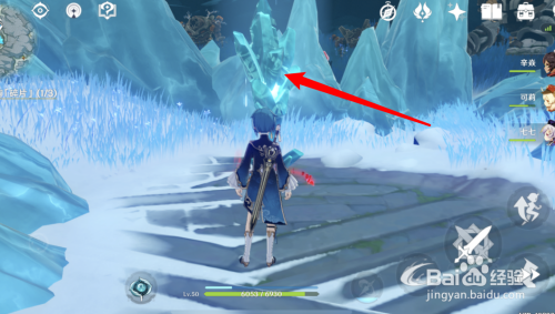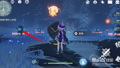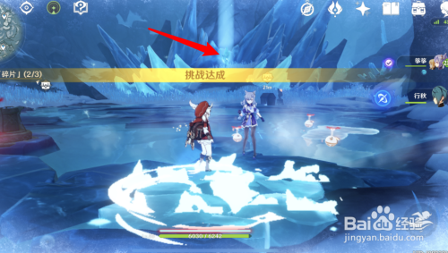 3、然后下图所指的就是第二个碎片,在这里我们需要开启挑战点亮冰柱,按照下图的顺序点亮冰柱就可以了。