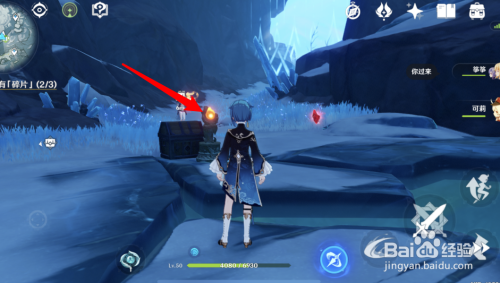 1、想要去到雪山山顶,我们需要集齐三个碎片。