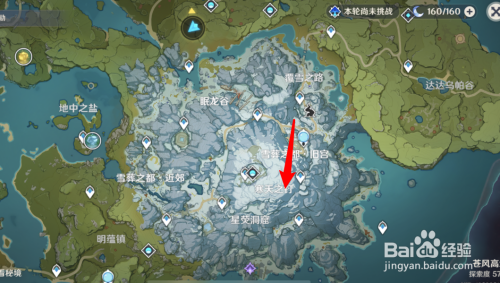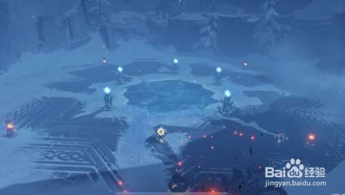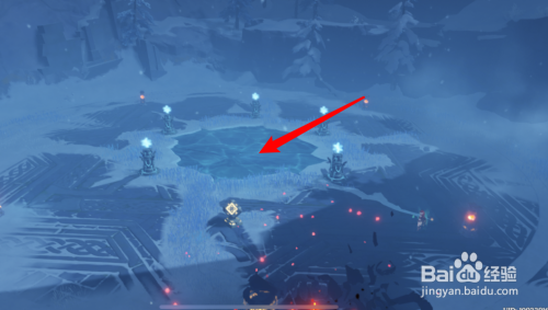 然后下图所指的就是第二个碎片,在这里我们需要开启挑战点亮冰柱,按照下图的顺序点亮冰柱就可以了。