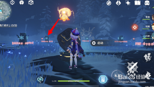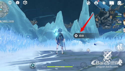 8、找齐三个碎片后,根据任务指引去到雪山山顶完成对话就可以 开启第一层的屏障。