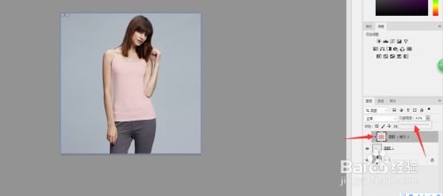 我们在调整下改图层的不透明度,这位美女是不是跟换了一件粉色吊带背心一样。以上就是剪贴蒙蔽的用法学会了吗!