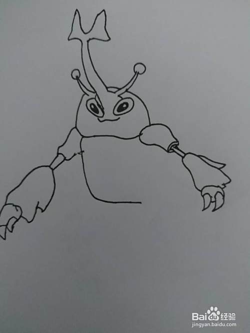 在两侧我们画上赫拉克罗斯的双臂,手臂比较长,手上有尖爪;