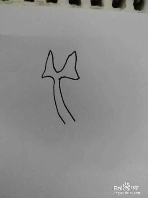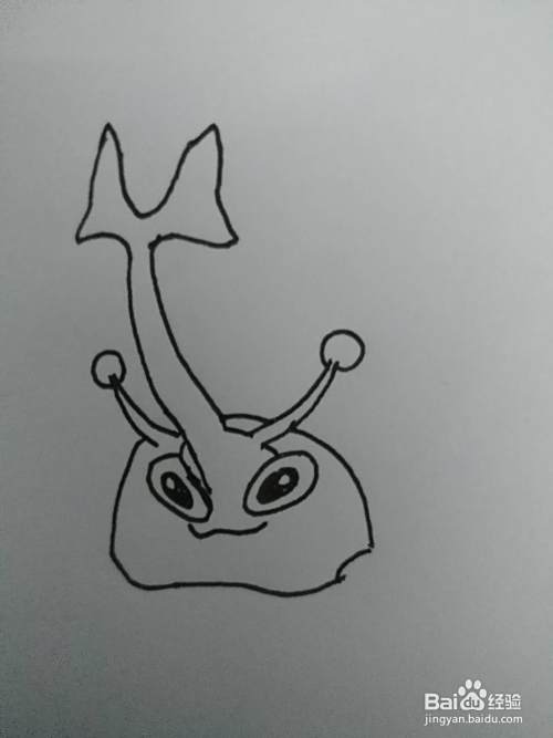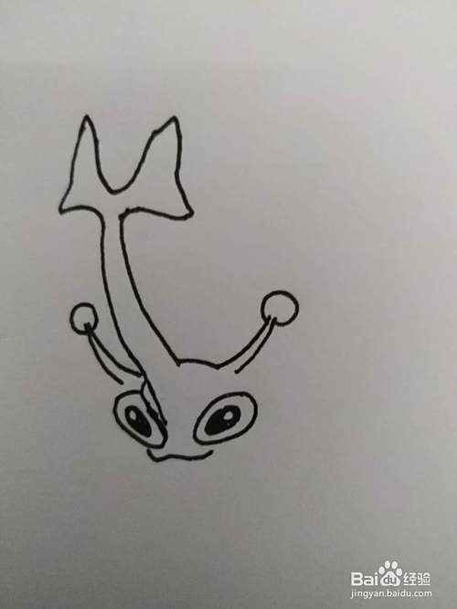 画上两根触角,下方画上两个椭圆形的眼睛;
