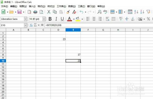 返回值为"23",即表示D3和E8两个单元格的整数进行"按位或"运算的结果为"23"。