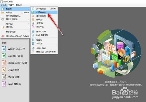 进入到软件操作界面,选择"文件"->"新建"->"电子表格"菜单。