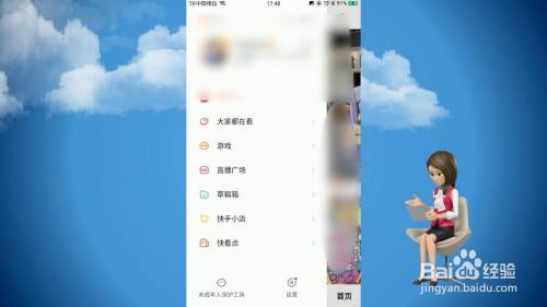 在快手页面往右滑动,或是点击左上角的图标,进入到个人系统。
