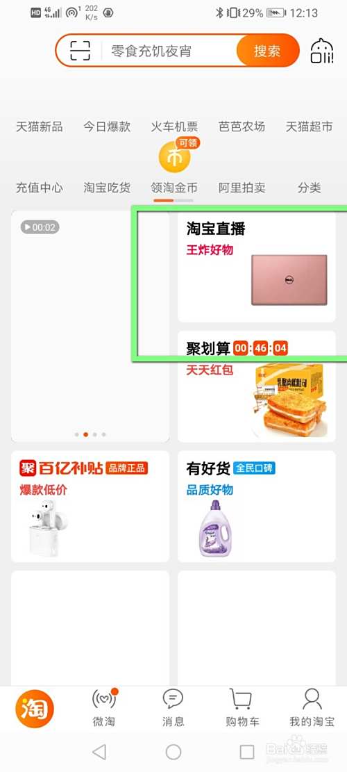 在淘宝里面点击首页中的淘宝直播。