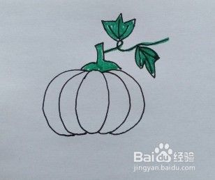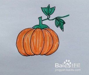 用水彩笔给南瓜的果实涂颜色。一个大大的南瓜就这样画好了。