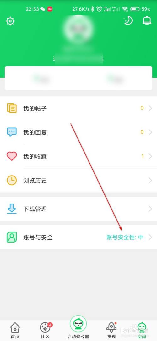 然后点击按钮,进入账号与安全。
