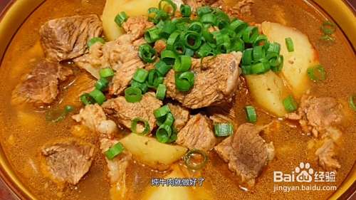 捞出牛肉中的小料,放入土豆、西红柿,放入半勺生抽酱油、老抽、一块豆腐乳、盐、胡椒粉,中小火炖15-20分钟,撒上葱花,炖牛肉就做好了。