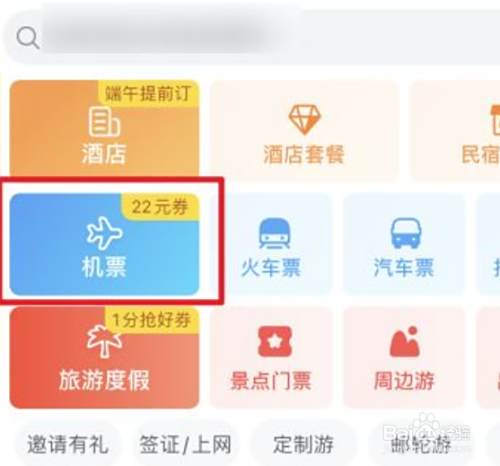 点击【机票】的图标进入