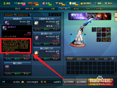 购买【角色更名卡】道具。