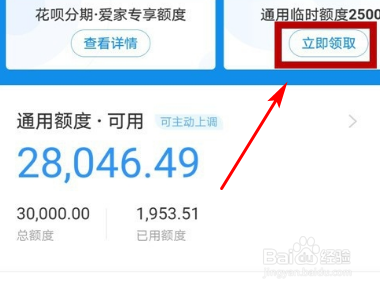 然后我们点击一下【我的额度】,接着选择查看【通用临时额度】,再继续点击【立即领取】。