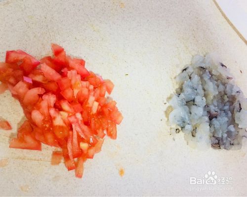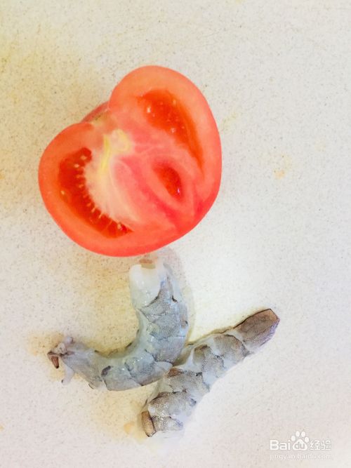 大虾清洗去头去尾去虾线西红柿清洗后切半个备用