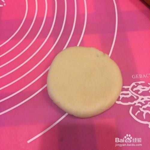 将红豆沙分成6克左右的小圆子,将静置好的面团擀成中间稍厚,外圈稍薄的圆面片,然后将豆沙包入。