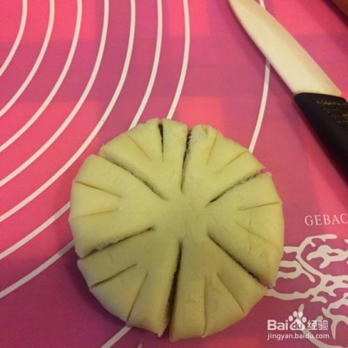 将面饼平均切割成六等分,中心不要切断。