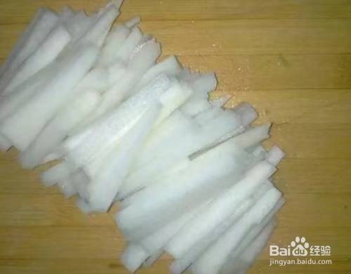 准备好白萝卜,干海椒,盐,没有水的干净的玻璃杯密封罐,白萝卜去皮,洗干净,切条条