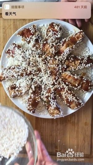 排骨滚上一圈糯米,码到盘子里