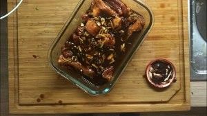 排骨和腌料一同放入有盖子的盒子,腌过夜
