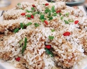 大火蒸45分钟至一个小时,起锅前加入枸杞焖一会儿再撒上葱花即可。软嫩又有弹性的排骨肉酱香浓郁,配上吸附了肉香的糯米,口感完美