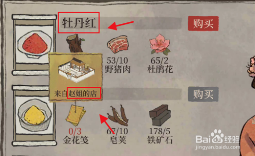 第五步,然后选择“赵姐的店”,打开“牡丹红”。